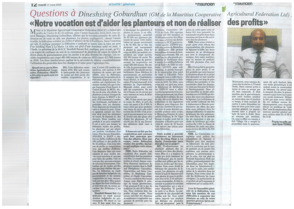17 March 2020 , Le Mauricien.