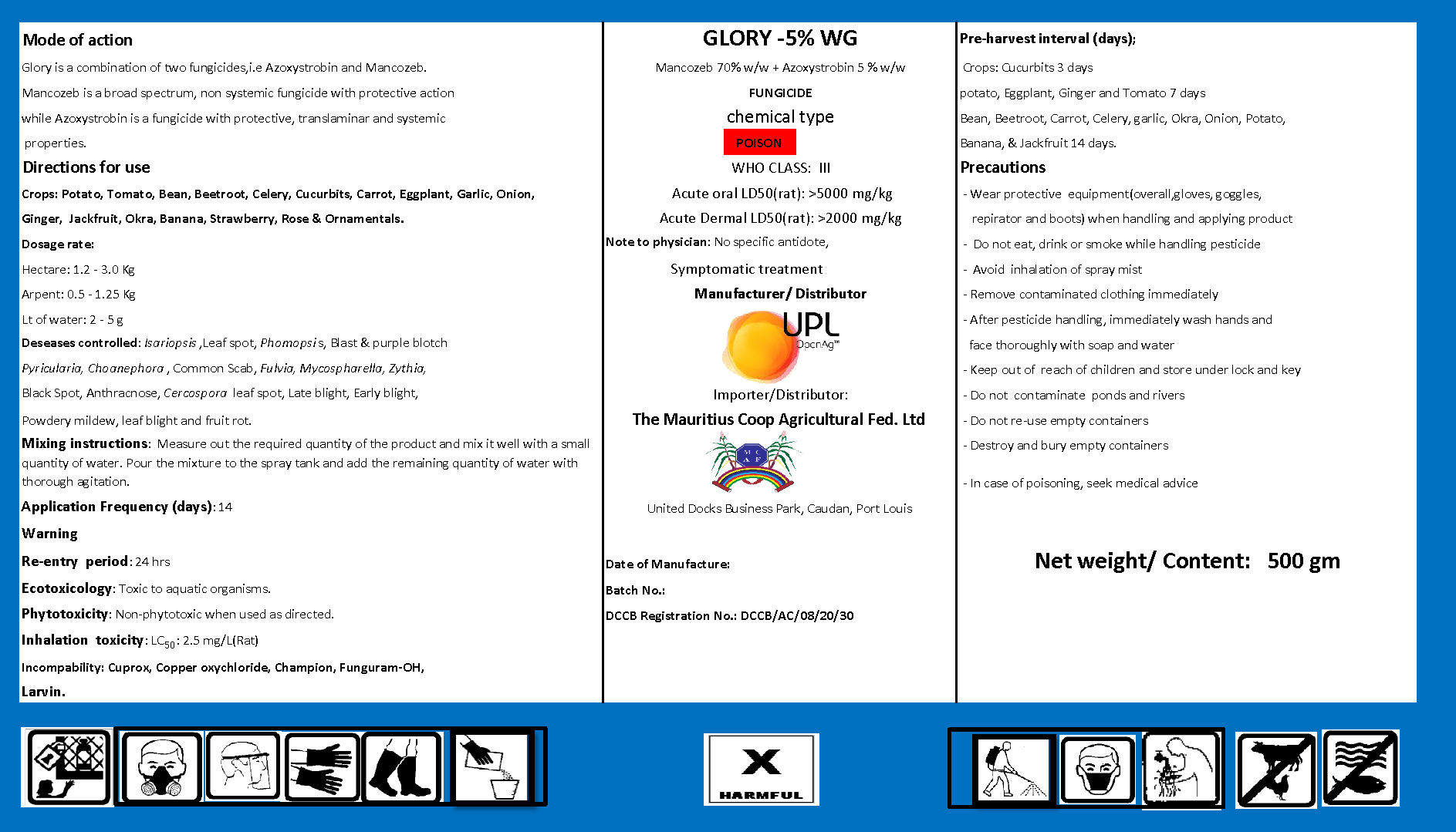 Active ingrediant: MANCOZEB 70% w/w + AZOXYSTROBIN 5% w/w